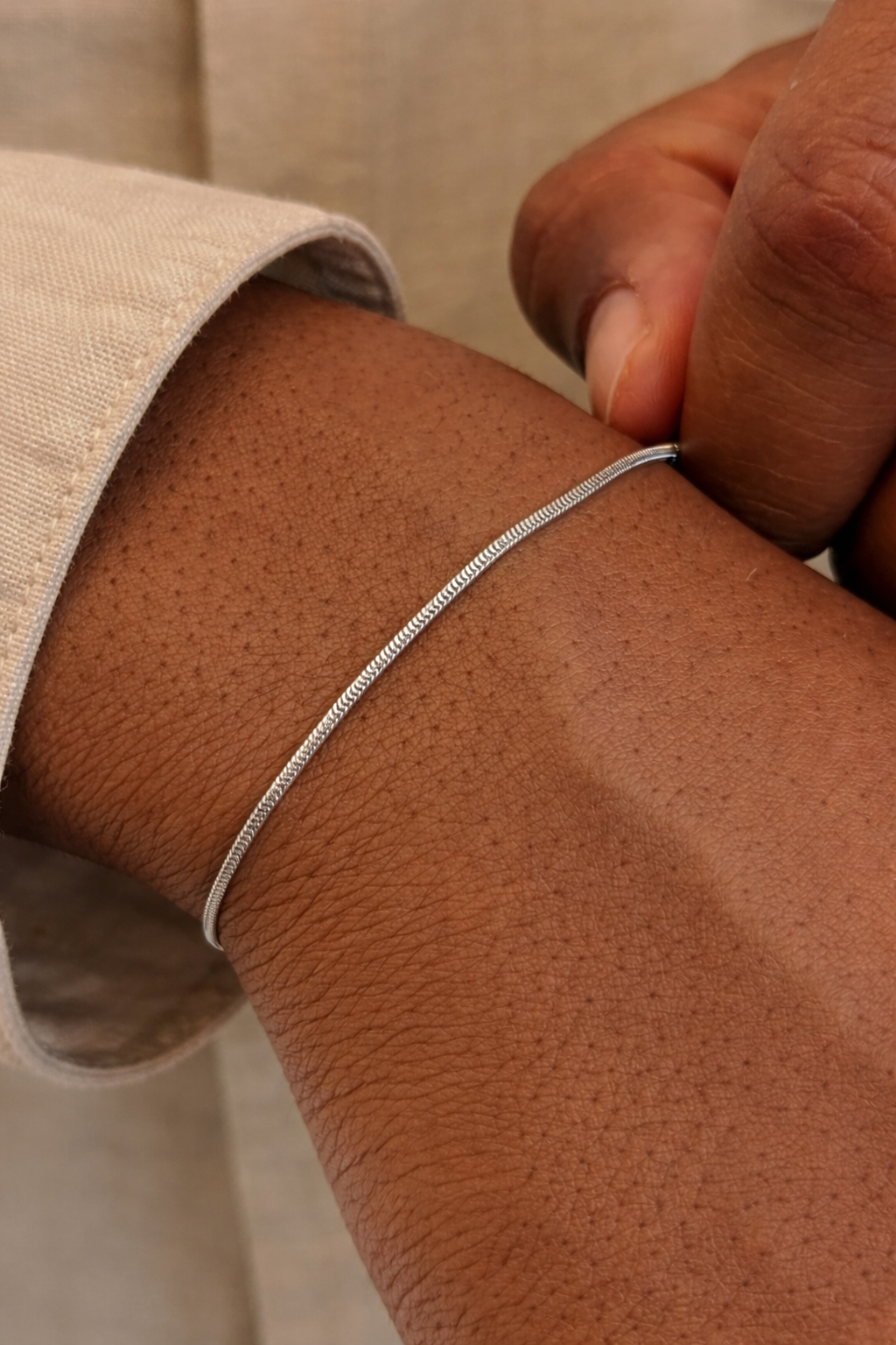 Apresentamos a nossa Pulseira Fina, um acessório minimalista mas intemporal, essencial no guarda-roupa de qualquer homem. O seu design elegante combina na perfeição com qualquer look, conferindo um toque de sofisticação ao seu visual. Quer opte por um look mais elegante ou mais casual, esta pulseira valoriza o seu estilo.